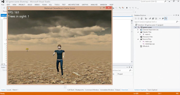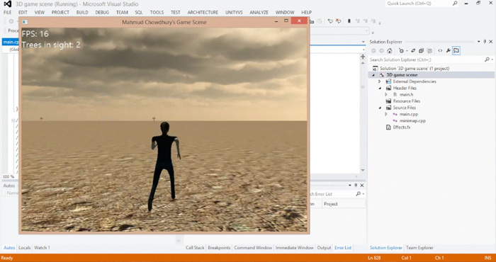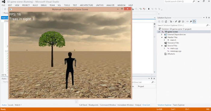 I have created a game scene using C++ programming language and Irrlitch game engine. The game scene shows how many frames are run per second and there is also a count system in place that shows how many trees are in the character’s line of sight. I have also been able to add 3D sounds so that every time the character moves, the sounds of her footsteps can be heard. I ran this game scene in PCs of different standards (both high performance PCs and low performance PCs) to see how the frame per second rate on a high performing PC and also on a low performing PC to show how smoothly the game can run on whatever device.
