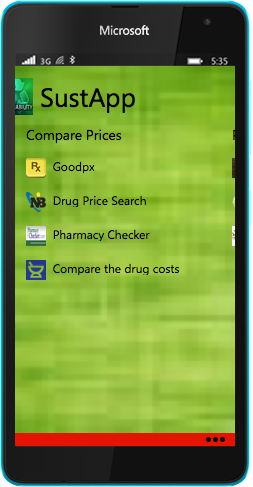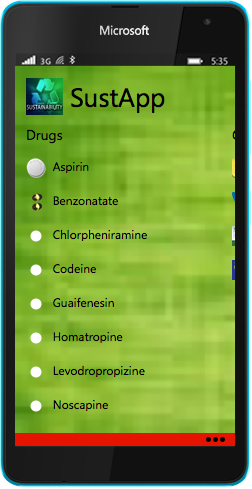SustApp also came to be as a result of the Sustainability PhD research project I was a part of. It is an application I designed using Windows App Studio and edited in Microsoft Visual Studio 2012. The application was designed to assist doctors/pharmacies and other drug purchasers to see which drug production companies were directly and actively involved in developing their immediate communities. So, when an individual goes on the application and decides to buy aspirin for example, he or she would see the different companies that produce the drug and their level of sustainability in community development areas and buy from those companies that are actively involved in improving their immediate environment. This would in turn encourage other production companies to do more for their communities.